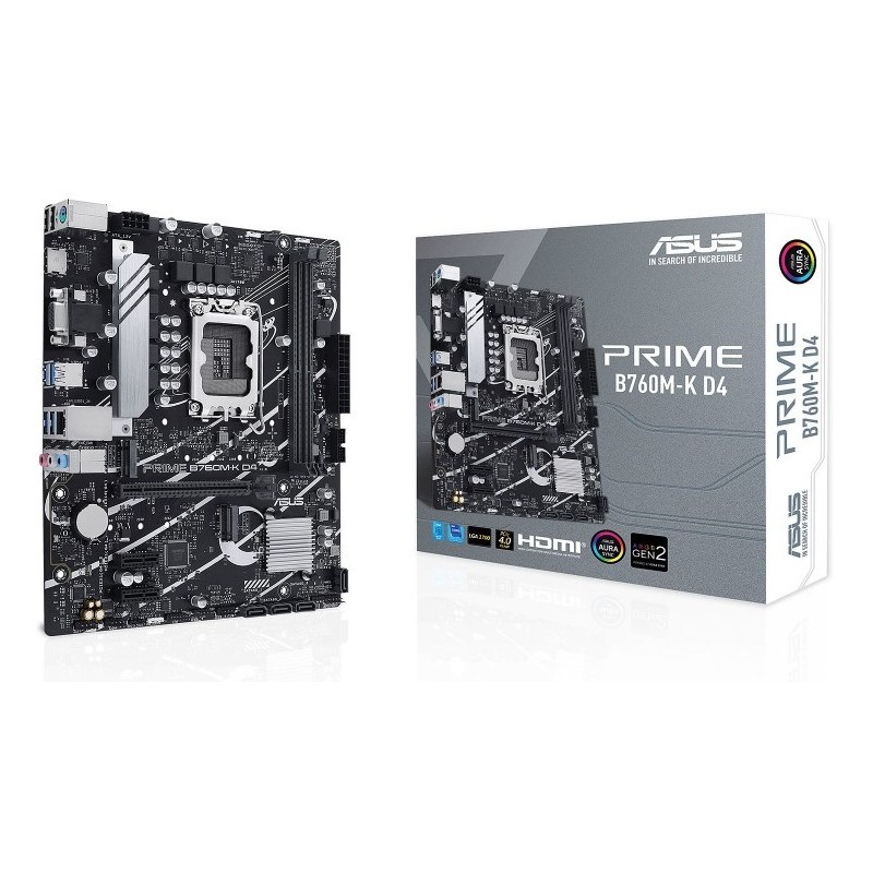 CARTE MERE Asus PRIME B760M-K D5 - Socket du processeur: LGA 1700 - Technologie de mémoire RAM: DDR4 - Vitesse d'horloge de mémoire: 4800 MHz - Marque du processeur: AMD - Poids du produit: 0.53 K - Format: Micro ATX - Débit SATA: 6 Gb/s - BIOS: 1 x 128 Mo UEFI - Refroidissement du chipset: Passif - Couleur: Noir