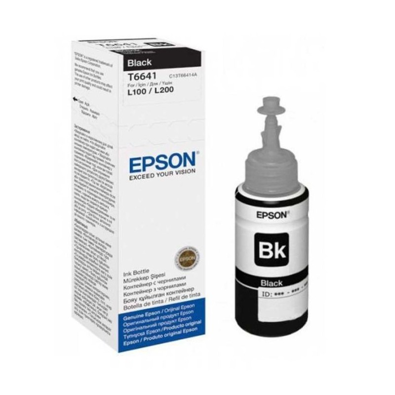 Bouteille D'encre Original EPSON T6641 - Capacité: 70 ml - Nombre total de pages (noir et blanc): 4000 pages - Compatible avec: Epson EcoTank ET-2650 ET-2500 ET-2550 ET-2600 ET-3600 ET-4500 ET-4550 ET-14000 L100 L110 L120 L130 L132 L200 L210 L220 L222 L300 L310 L312 L350 L355 L360 L362 L365 L366 L382 L386 L455 L456 L486 L550 L555 L565 L655 L1300 - Couleur: Noir.