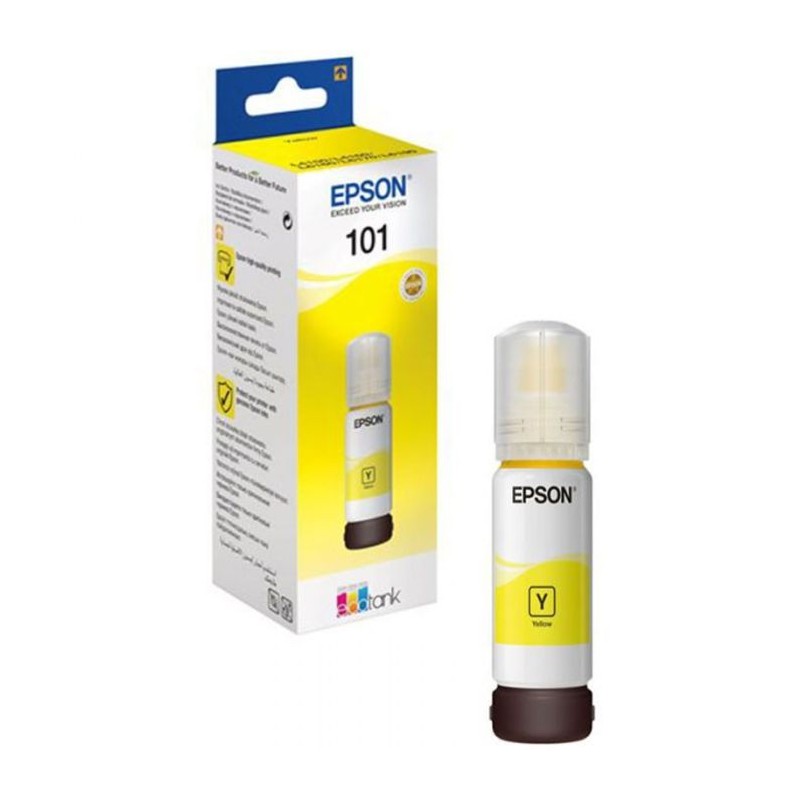 Bouteille D'encre Original EPSON 101- Capacité: 70 ml - Nombre total de pages (couleur): 6000 pages - Compatible avec: les imprimantes Epson EcoTank L415/ 4160 /L6160/L6170/L6190 - Couleur: Jaune