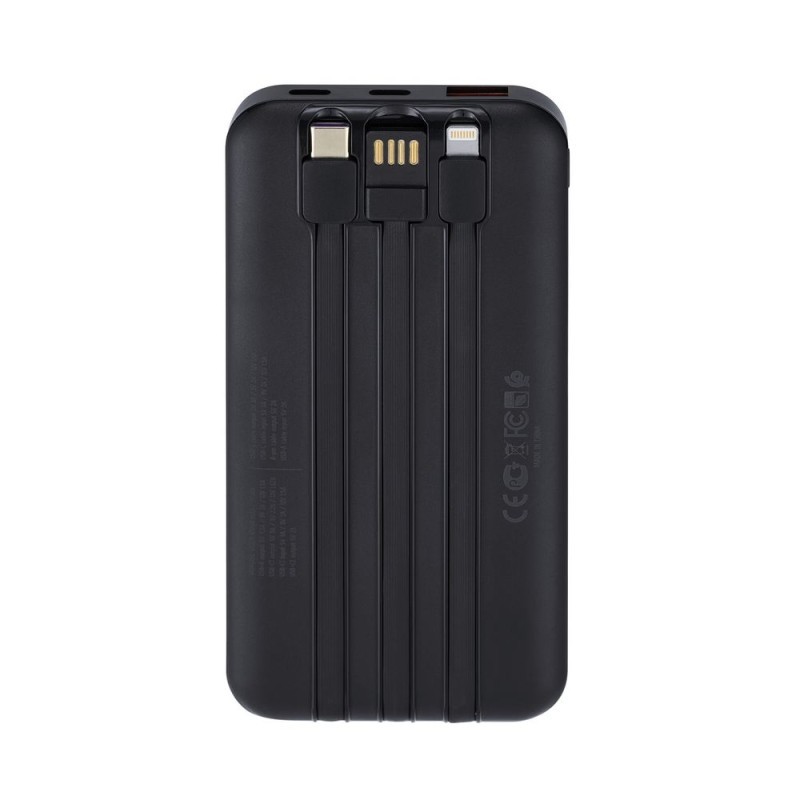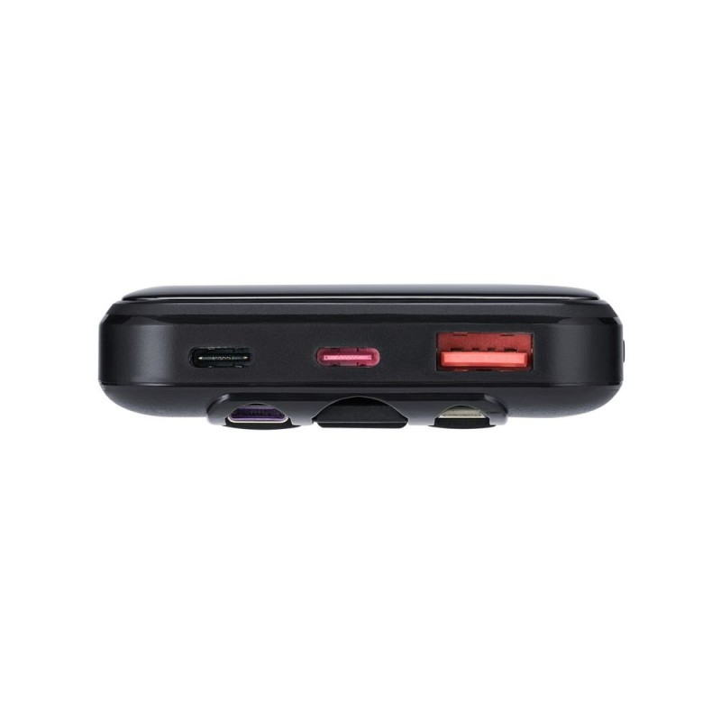 Power Bank RivaCase 10000 mAh – Type de câble intégré: USB-C , Lightning , USB-A – Capacité de la batterie: 10000 mAh – Capacité de la batterie: 37 Wh – Longueur de cable: 0.15 m – Entrée USB-C: QC 3.0 , USB-C PD 3.0 – Entrée USB-A: 5V-2A – Sortie USB-A: 5V-2A – Recharge simultanée de deux appareils, W: 22.5 DANS – Sortie Lightning: 5V-2A – Sortie USB-C: 5 V-3 A , 9 V-2 A , 12 V-1.5 A – Dimensions: 68 x 18 x 142 mm – Poids: 280 g