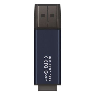 Clé USB TeamGroup C211 - Interface USB 3.2 - Capacité 16 Go - Résistant au chocs - Etanche à la poussière - Dimensions 56 x 17.2 x 7.6 mm - Poids 8g - Garantie à vie