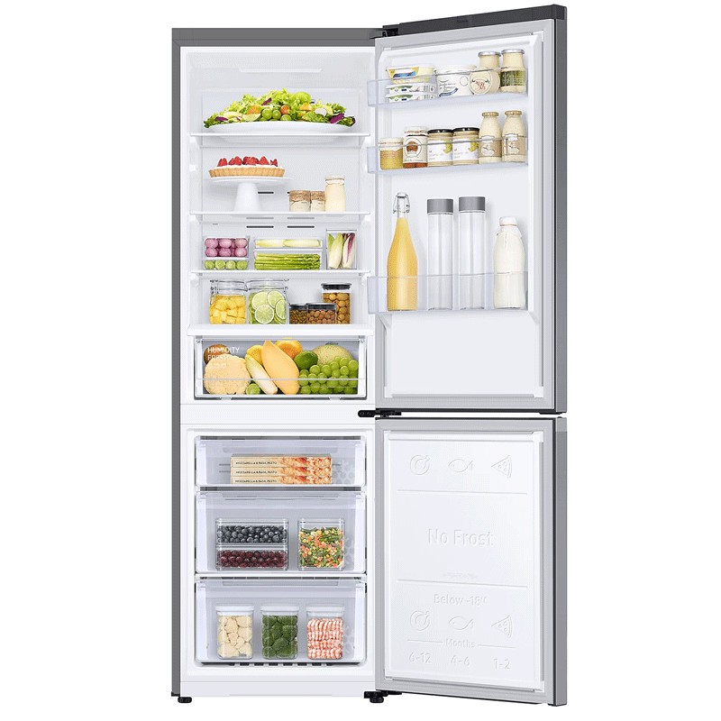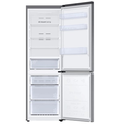 Système de Dégivrage : No Frost (Froid Ventilé) - Classe énergétique : 1 - Volume Net Totale : 340 Litres (Réfrigérateur : 228 Litres , Congélateur : 112 Litres) - Consommation d'énergie annuelle : 235 KWh - Niveau Sonore : 37dB - INVERTER : Oui - Fonctionne avec l'application SmartThings - Nombre d'étoiles congélateur : ★★★★ - Type de refroidissement : All arround cooling- Wi-Fi intégré - Dimensions (LxHXP) : 595 x 1853 x 658mm - Poids Net : 62 kg - Type de Gaz : R600a - Couleur : Silver - Garantie 3 ans + Garantie 20 ans Sur le Compresseur