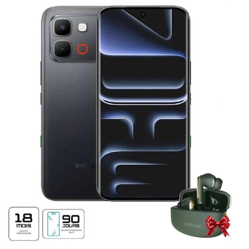 Écran: 6,78" pouces 3D Curved 1.5 AMOLED Display (1208 x 2644 pixels),120 Hz, Corning Gorilla Glass 7i Processeur: Mediatek Dimensity 7100 (6 nm)Octa-core (4x2,4 GHz Cortex-A78 et 4x2,0 GHz Cortex-A55) GPU Mali-G610 MC2 Système d'exploitation: Android 16, jusqu'à 3 mises à jour majeures d'Android, XOS 16 Mémoire RAM: 8Go extensible jusqu'à 16Go Capacité de stockage: 256Go Appareil photo Arrière: Dual 50 MP Caméra selfie : 13 MP, f/2.2, (grand angle), 1,12 µm Nombre de SIM: Double SIM Connectivités: 5G, Wifi et Bluetooth 5.4 Capacités de la batterie: 6500mAh Charge rapide filaire 45W Audio : Deux haut-parleurs avec son par JBL Capteurs : Capteur d'empreintes digitales (sous l'écran, optique), accéléromètre, gyroscope, capteur de proximité, boussole, fréquence cardiaque, SpO2, NFC Résistant à la poussière et aux éclaboussures: IP65 Écouteurs sans fil Infinix XE28 offerts Garantie 1 an + Garantie Écran 90 Jours
