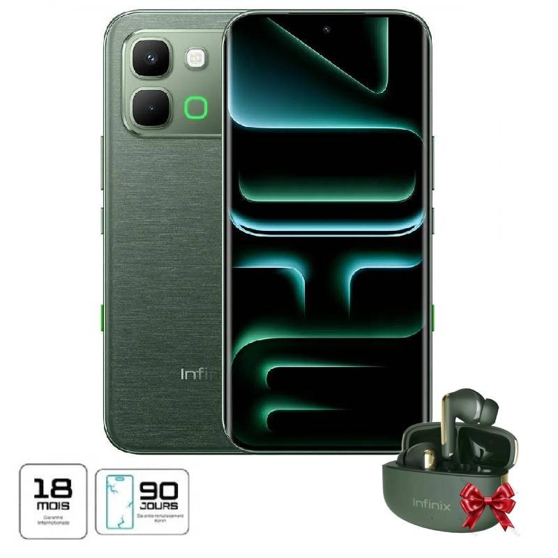 Écran: 6,78" pouces 3D Curved 1.5 AMOLED Display (1208 x 2644 pixels),120 Hz, Corning Gorilla Glass 7i Processeur: Mediatek Dimensity 7100 (6 nm)Octa-core (4x2,4 GHz Cortex-A78 et 4x2,0 GHz Cortex-A55) GPU Mali-G610 MC2 Système d'exploitation: Android 16, jusqu'à 3 mises à jour majeures d'Android, XOS 16 Mémoire RAM: 8Go extensible jusqu'à 16Go Capacité de stockage: 256Go Appareil photo Arrière: Dual 50 MP Caméra selfie : 13 MP, f/2.2, (grand angle), 1,12 µm Nombre de SIM: Double SIM Connectivités: 5G, Wifi et Bluetooth 5.4 Capacités de la batterie: 6500mAh Charge rapide filaire 45W Audio : Deux haut-parleurs avec son par JBL Capteurs : Capteur d'empreintes digitales (sous l'écran, optique), accéléromètre, gyroscope, capteur de proximité, boussole, fréquence cardiaque, SpO2, NFC Résistant à la poussière et aux éclaboussures: IP65 Écouteurs sans fil Infinix XE28 offerts Garantie 1 an + Garantie Écran 90 Jours