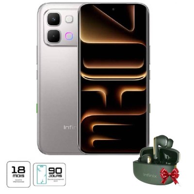 Écran: 6,78" pouces 3D Curved 1.5 AMOLED Display (1208 x 2644 pixels),120 Hz, Corning Gorilla Glass 7i Processeur: Mediatek Dimensity 7100 (6 nm)Octa-core (4x2,4 GHz Cortex-A78 et 4x2,0 GHz Cortex-A55) GPU Mali-G610 MC2 Système d'exploitation: Android 16, jusqu'à 3 mises à jour majeures d'Android, XOS 16 Mémoire RAM: 8Go extensible jusqu'à 16Go Capacité de stockage: 256Go Appareil photo Arrière: Dual 50 MP Caméra selfie : 13 MP, f/2.2, (grand angle), 1,12 µm Nombre de SIM: Double SIM Connectivités: 5G, Wifi et Bluetooth 5.4 Capacités de la batterie: 6500mAh Charge rapide filaire 45W Audio : Deux haut-parleurs avec son par JBL Capteurs : Capteur d'empreintes digitales (sous l'écran, optique), accéléromètre, gyroscope, capteur de proximité, boussole, fréquence cardiaque, SpO2, NFC Résistant à la poussière et aux éclaboussures: IP65 Écouteurs sans fil Infinix XE28 offerts Garantie 1 an + Garantie Écran 90 Jours