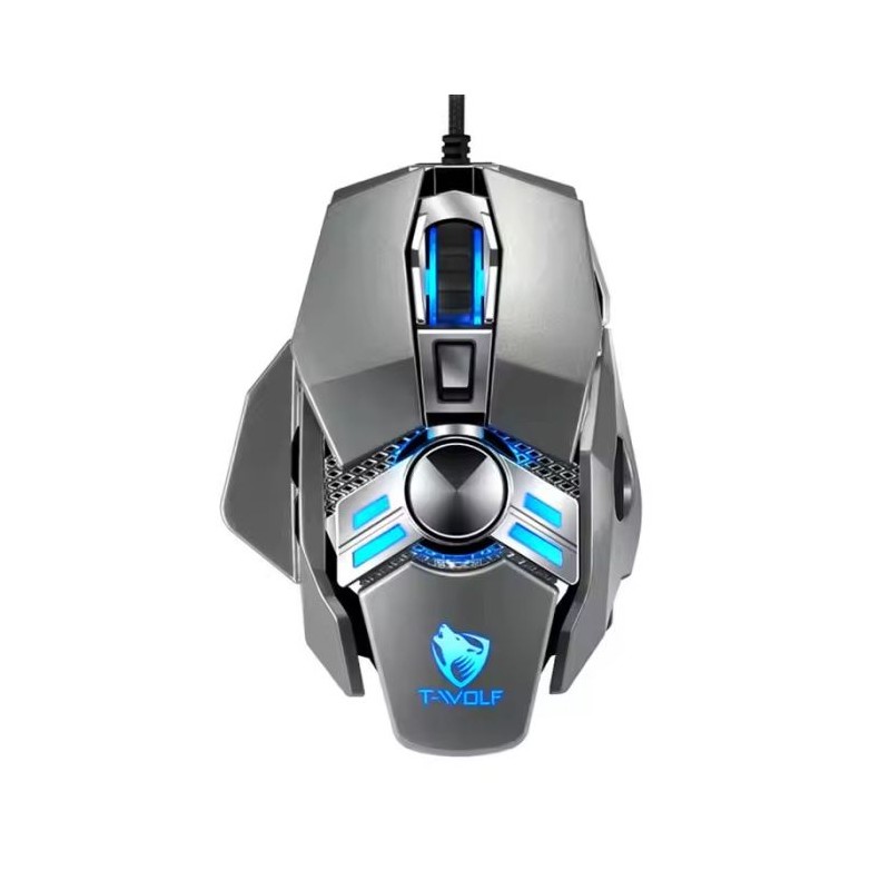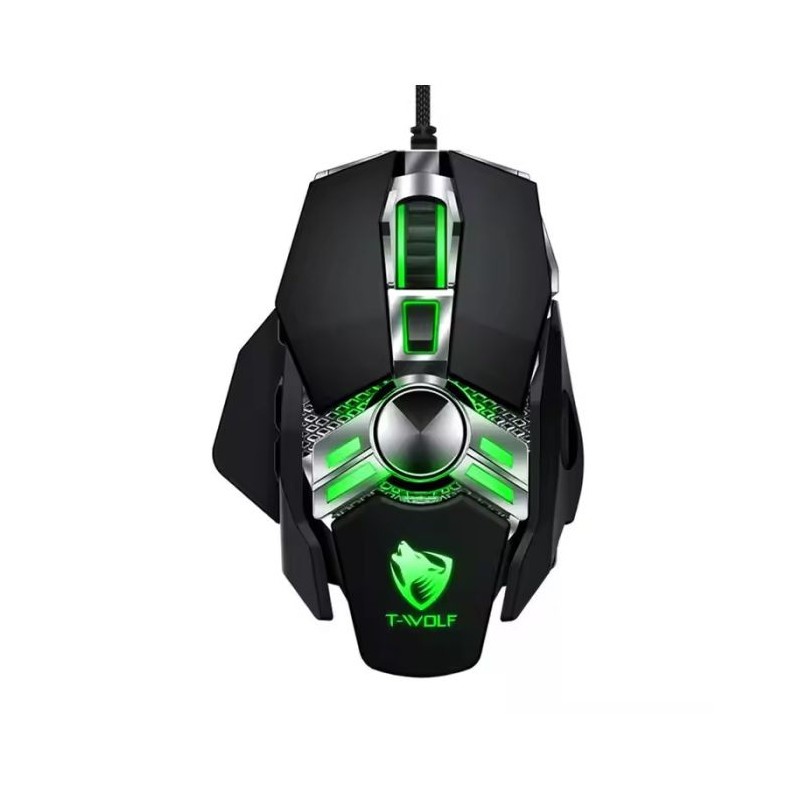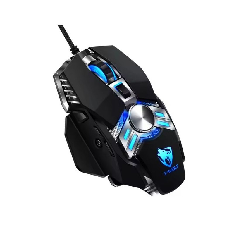 Souris Gamer T-WOLF WARRIOR V10 - Technologie de connectivité: Filaire - Interface: USB - Résolution: 6400 DPI - Nombre de boutons: 7 programmables - Effet de lumière de respiration à LED 4 couleurs cool - Longueur du câble: 1.5 mètre - Dimensions: 120 x 85 x 32 mm - Poids: 135 g - Couleur: Noir - Garantie: 1 an.