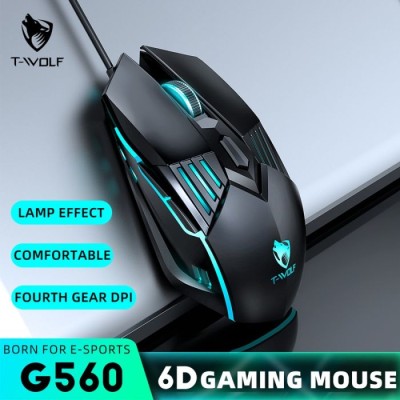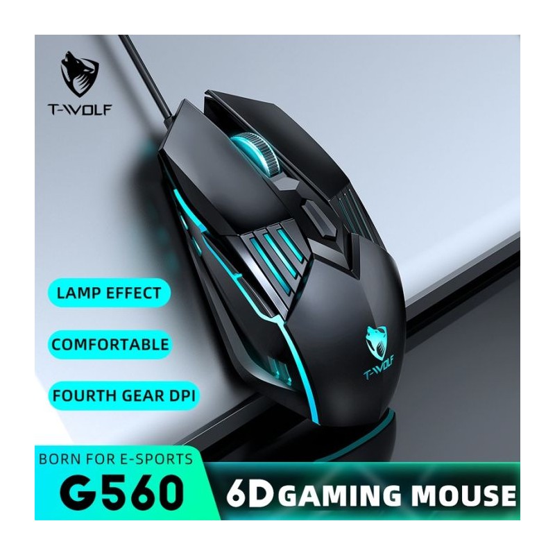 Souris Gamer T-WOLF G560 - Technologie de connectivité: Filaire - Interface: USB - Résolution: 3600 DPI - Nombre de boutons: 6 programmables - Couleur: Noir - Garantie: 1 an.