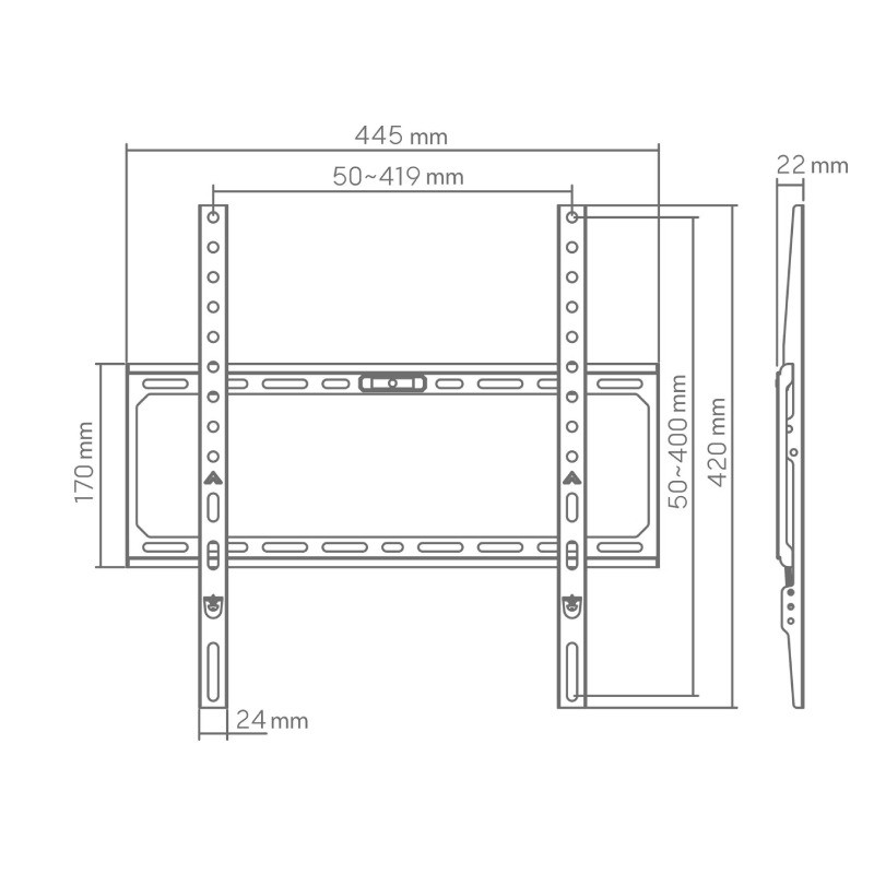 SUPPORT SBOX BUDGET BL-3724F - Type de support: Fixe - Taille d'écran supporté: de 32" jusqu'à 75'' - Capacité: 45 kg - Fixation: Mural - VESA minimum: 50x50 - VESA maximum: 400x400 - Couleur: Noir - Garantie: 1an